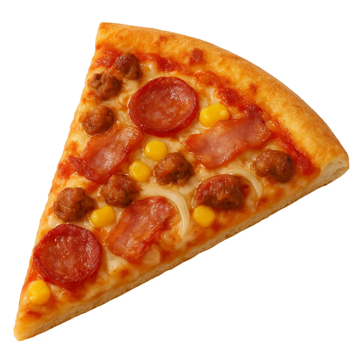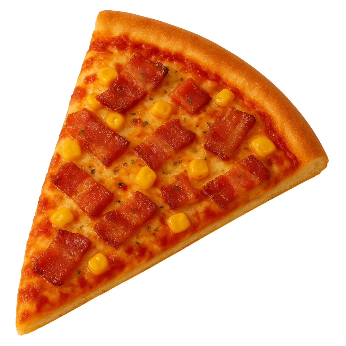 Pizza con Salsa napolitana, queso, tocineta, maíz tierno