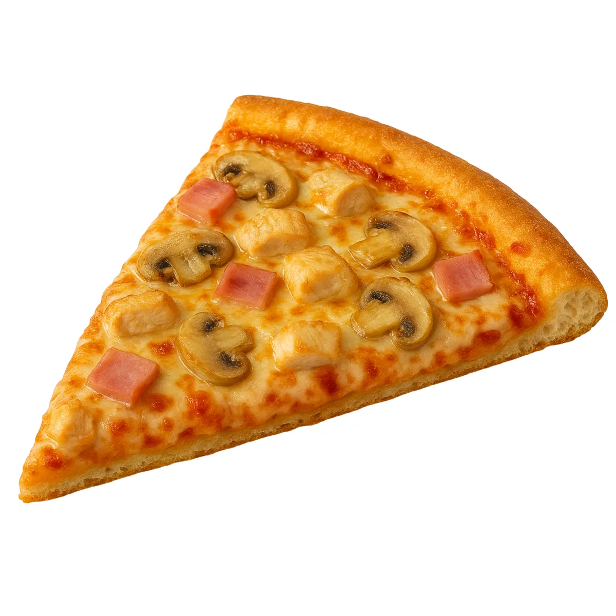 Pizza con Pollo, champiñón, jamón, queso y salsa