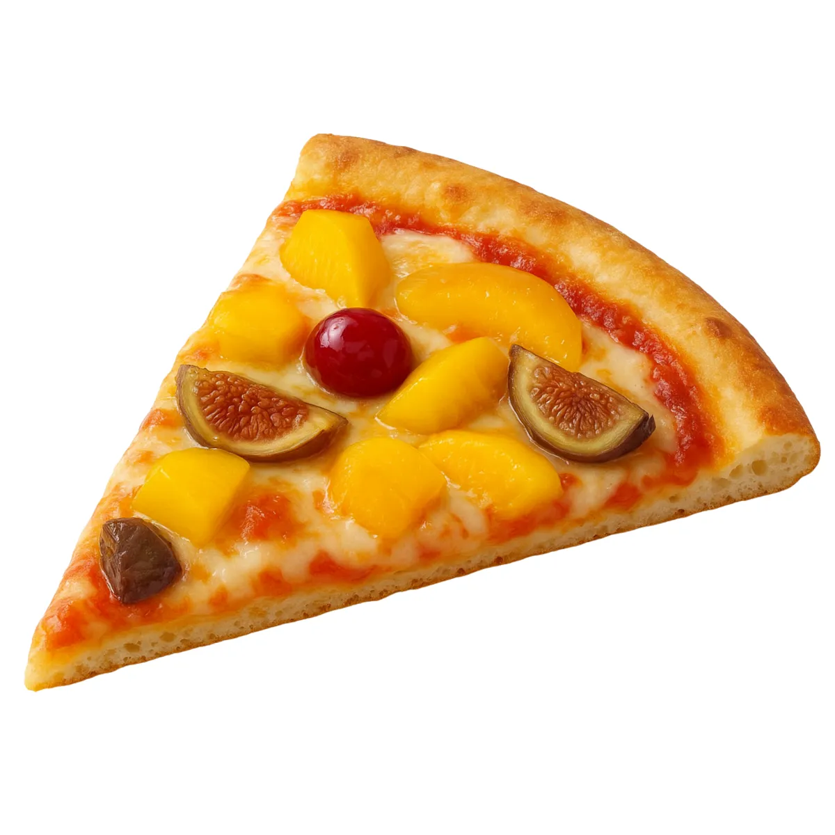 Pizza con Durazno, cereza, mango, brevas, queso y salsa