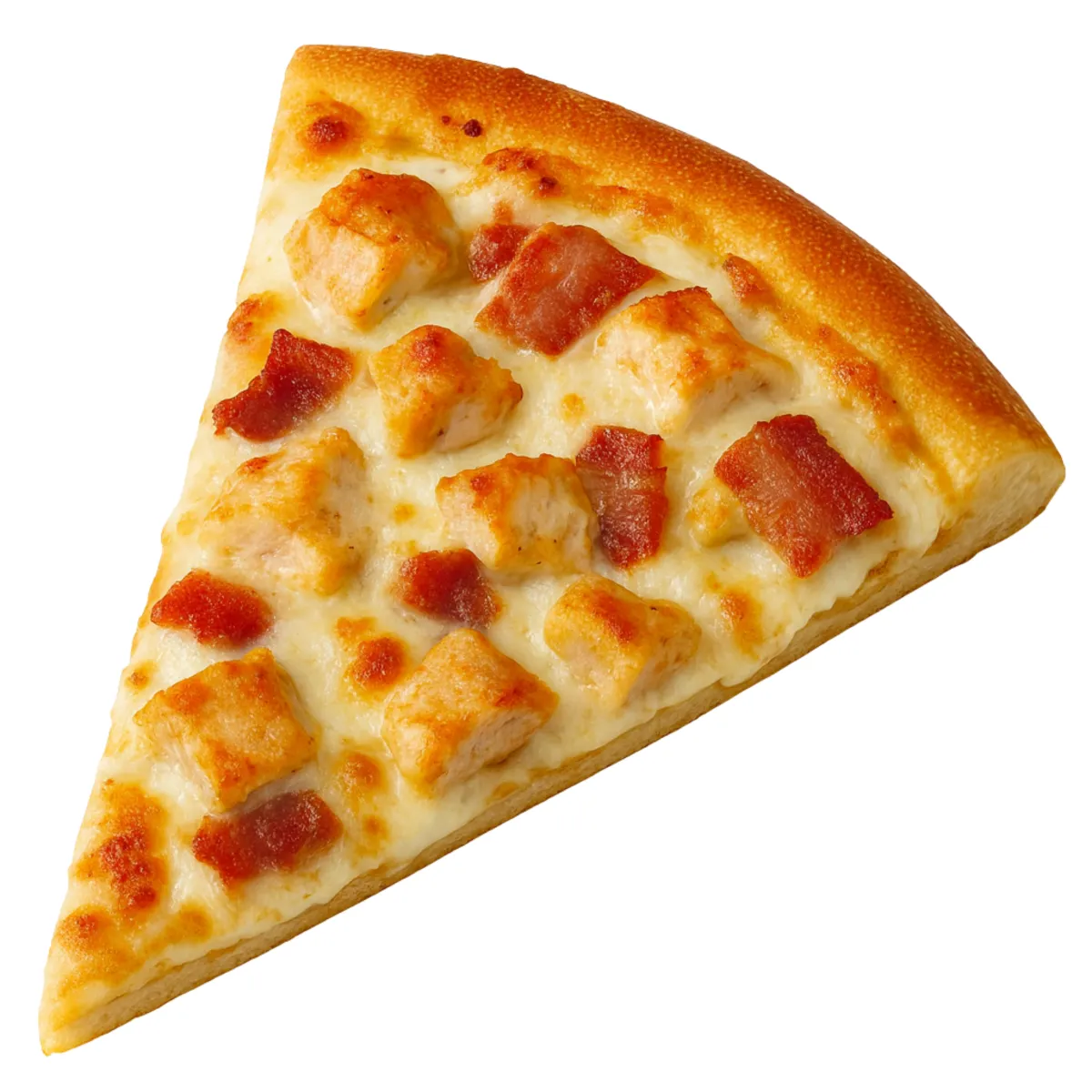Pizza con Pollo, tocineta, queso, y salsa bechamel