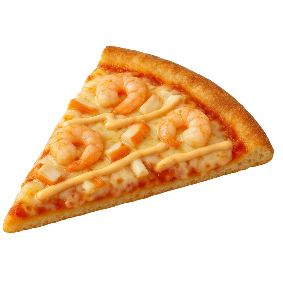 Pizza con Camarón, queso, palmitos de cangrejo, salsa de la casa
