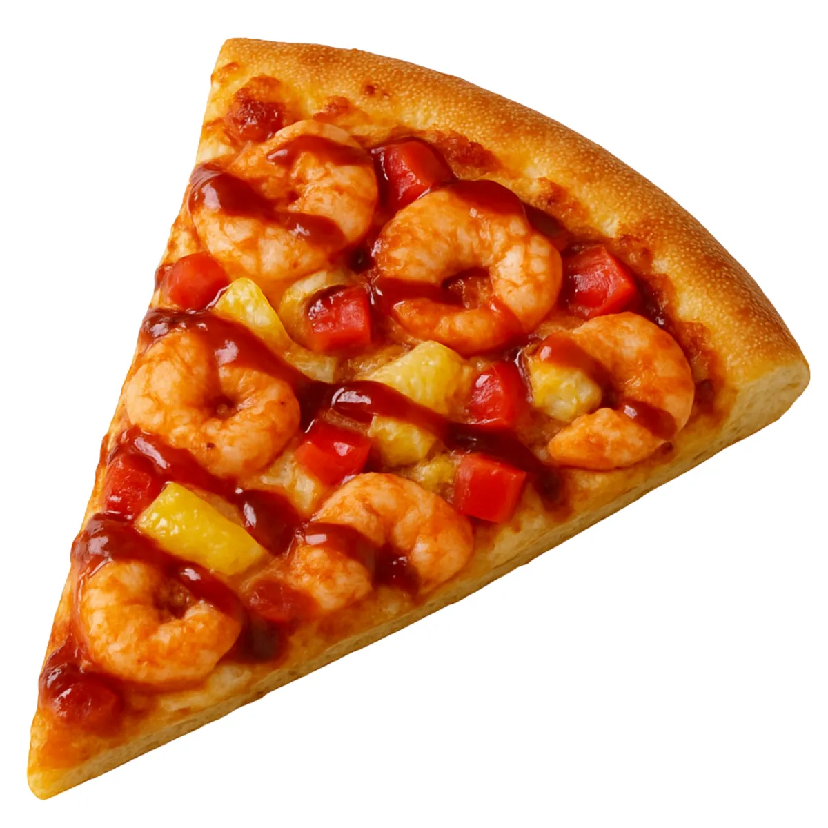 Pizza con Camarones, tomate, piña, queso y salsa BBQ