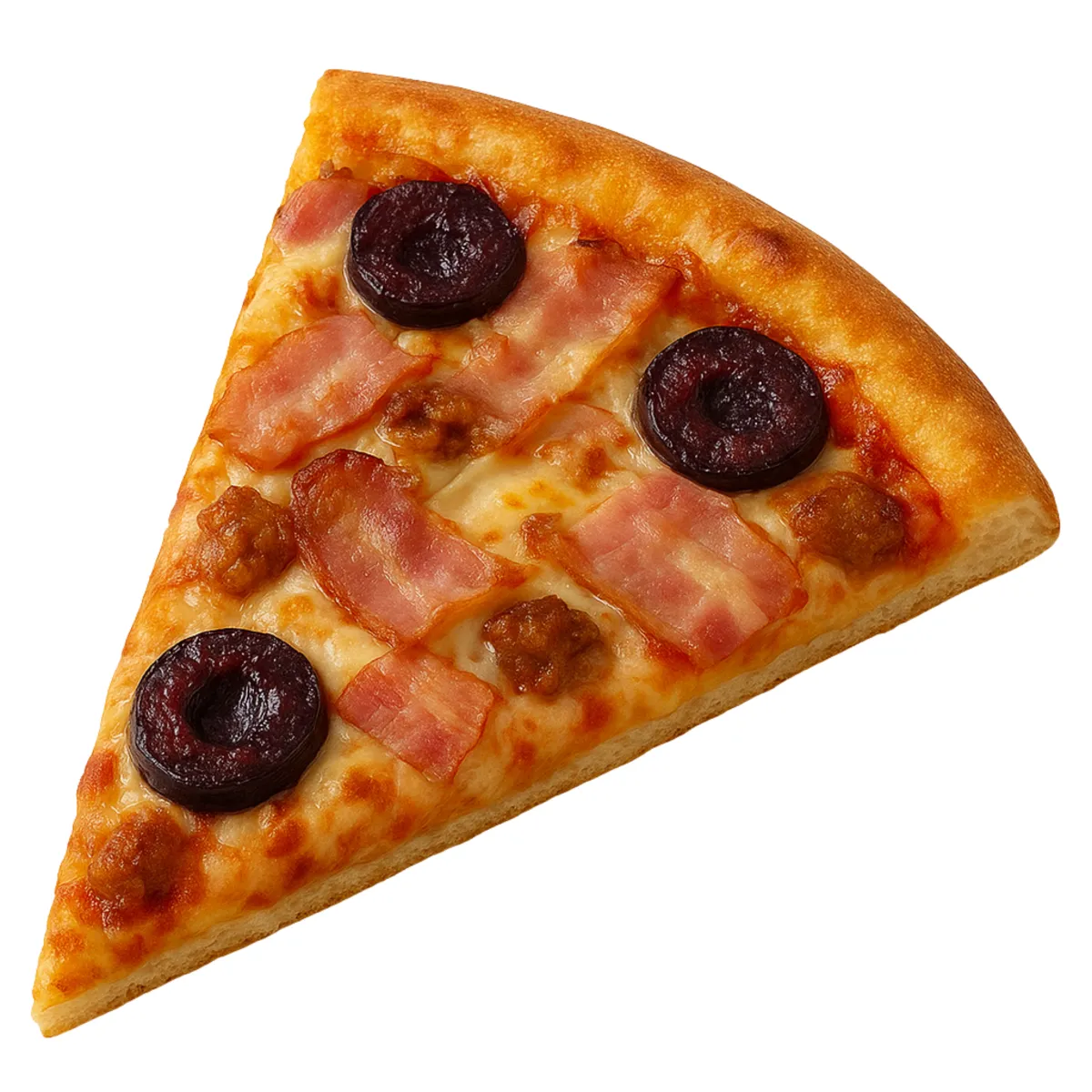 Pizza con Salsa napolitana, queso, tocineta, salsa de ciruela