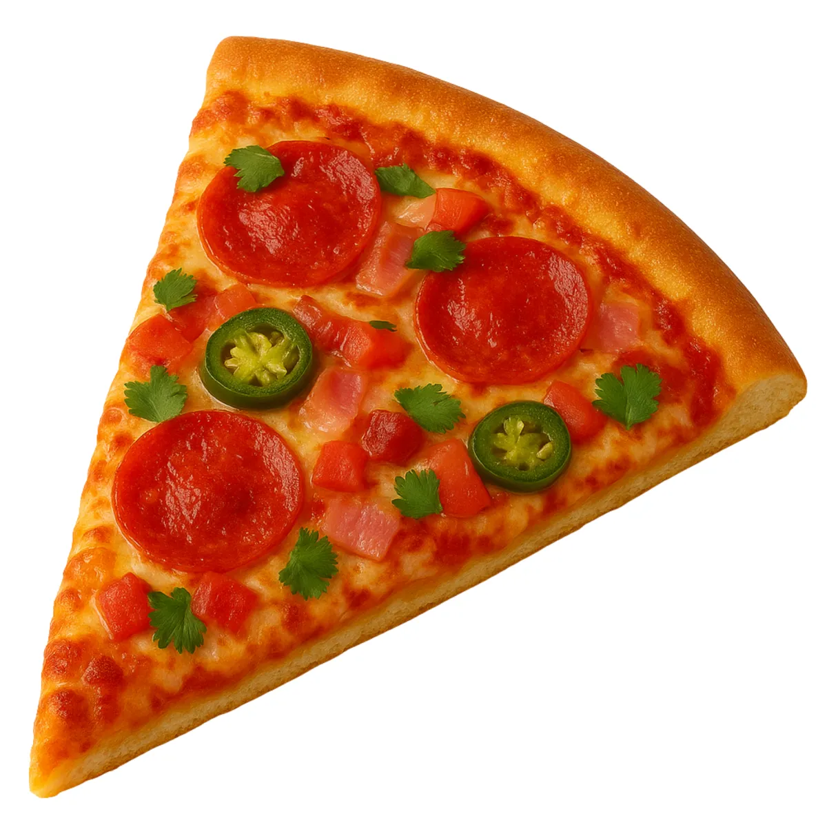 Pizza con Tomate, cilantro, jamón, pepperoni, queso y jalapeños