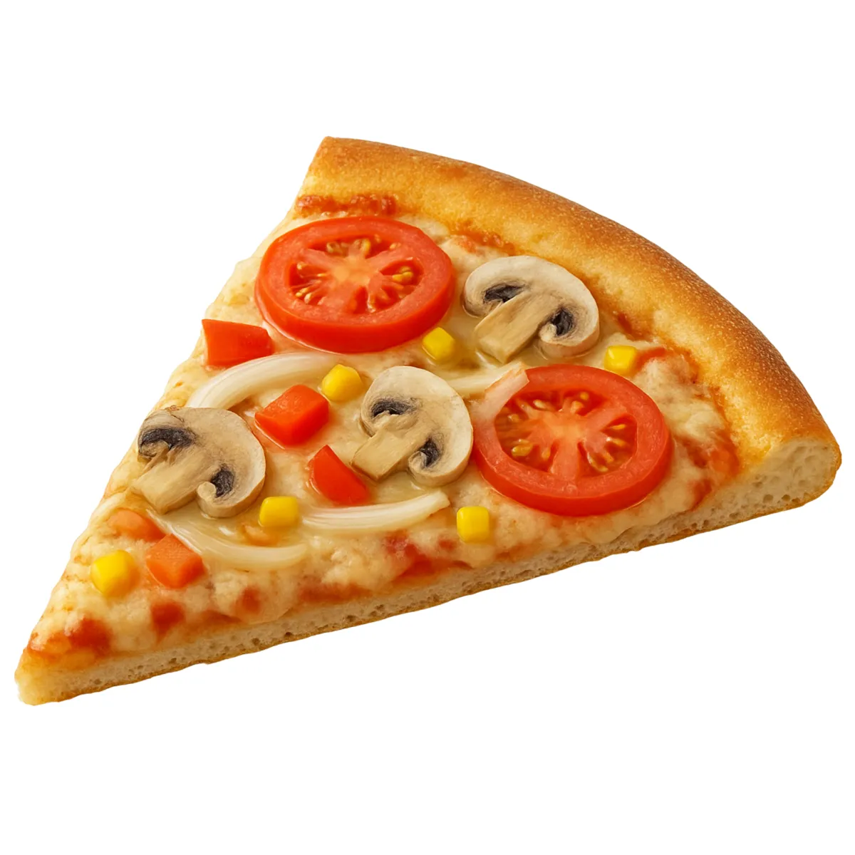 Pizza con Tomate, pimentón, cebolla, champiñones, maíz tierno y queso
